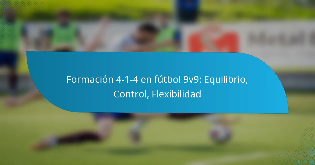 La formación 4-1-4 ofrece un enfoque equilibrado en el fútbol 9v9 al distribuir a los jugadores de manera efectiva por el campo, asegurando tanto solidez defensiva como apoyo ofensivo. Esta formación permite a los equipos mantener el control en el mediocampo mientras proporciona flexibilidad durante las transiciones entre defensa y ataque.